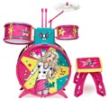 Com um design encantador, a bateria é decorada com desenhos da Barbie, o que torna o brinquedo ainda mais atrativo para as meninas. O conjunto inclui dois tons, um bumbo, um prato, duas baquetas, um pedal e um banquinho, proporcionando uma experiência completa de tocar bateria.